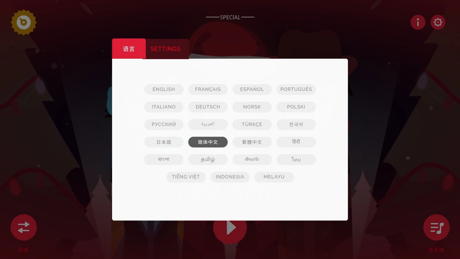 2、进入后就能看到语言切换选项,找到简体中文并点击就可以了。