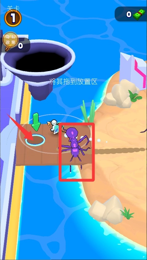 3、把抓到的蚂蚁拖到放置区暂时存放,等数量攒够了再统一安排。