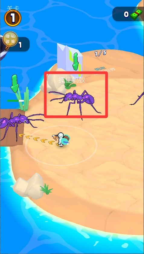 2、要找准时机点击抓捕按钮,等蚂蚁静止不动时出手最稳妥,一旦抓捕失败,它就会逃跑,需要重新去追。