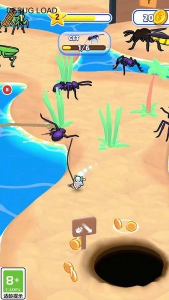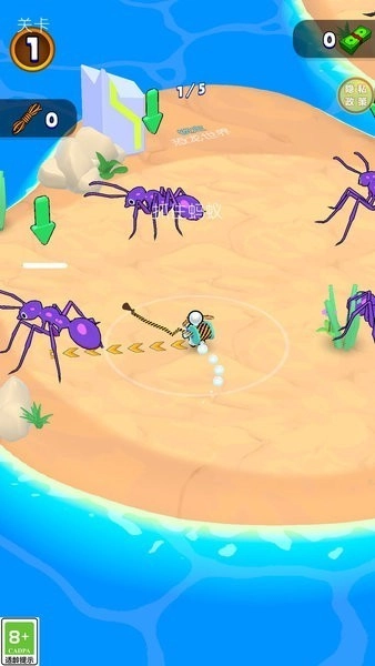1、用左手滑动屏幕来操控角色移动,悄悄靠近目标别惊扰到它,蚂蚁体型小,得凑近了才能抓住。