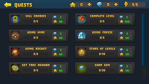 2、中需要购买武器和士兵来抵挡僵尸的进攻。