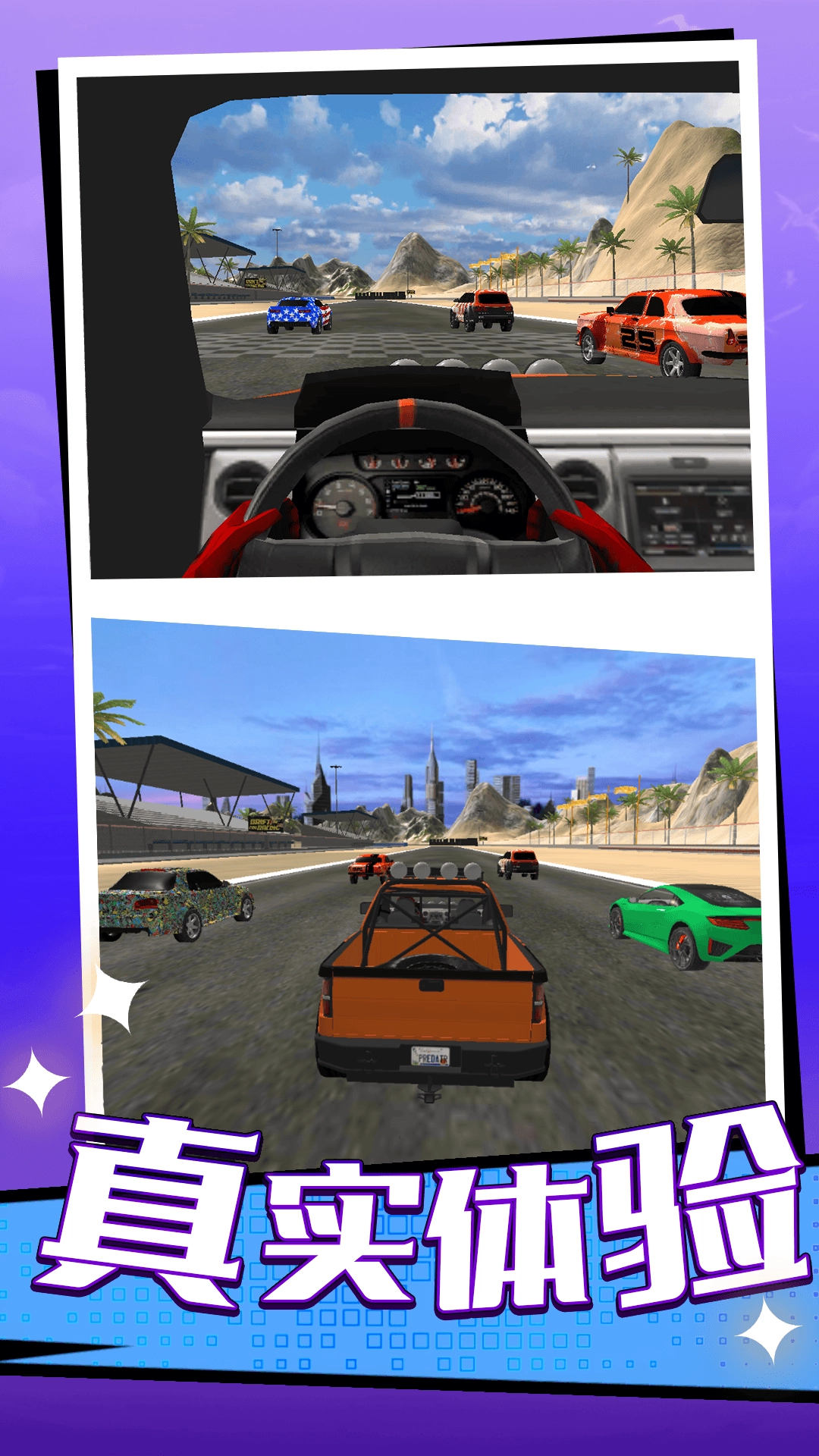 1、构建高度还原的驾驶场景,包含城市街道等多种赛道类型,场景细节饱满,结合真实的物理碰撞机制,体验沉浸式的赛车环境。