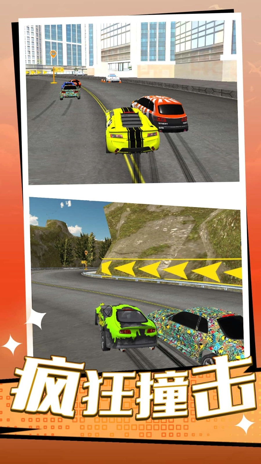 3、核心玩法围绕极速狂飙与疯狂撞击展开,跳出传统赛车的温和模式,让玩家在驾驶过程中感受激烈碰撞带来的刺激,玩法更具冲击力。
