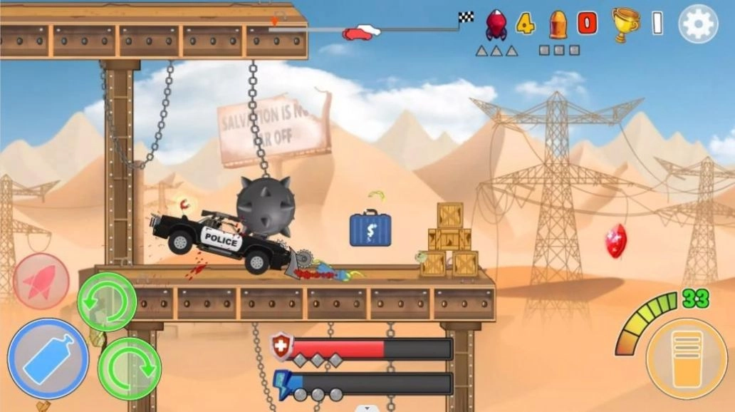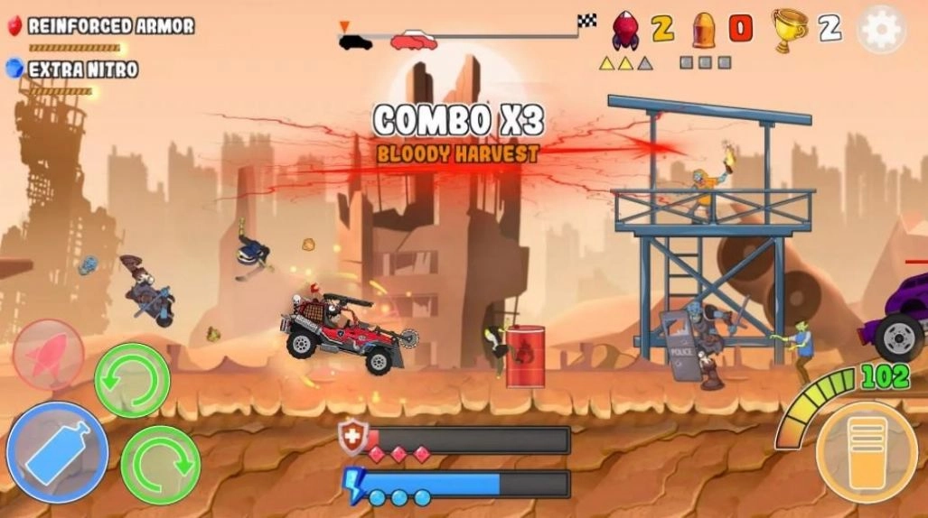 3、玩家要确保赛车平稳行驶,同时借助地形灵活做出反应与攻击。你得穿越各类地形,应对周边城市僵尸的破坏。