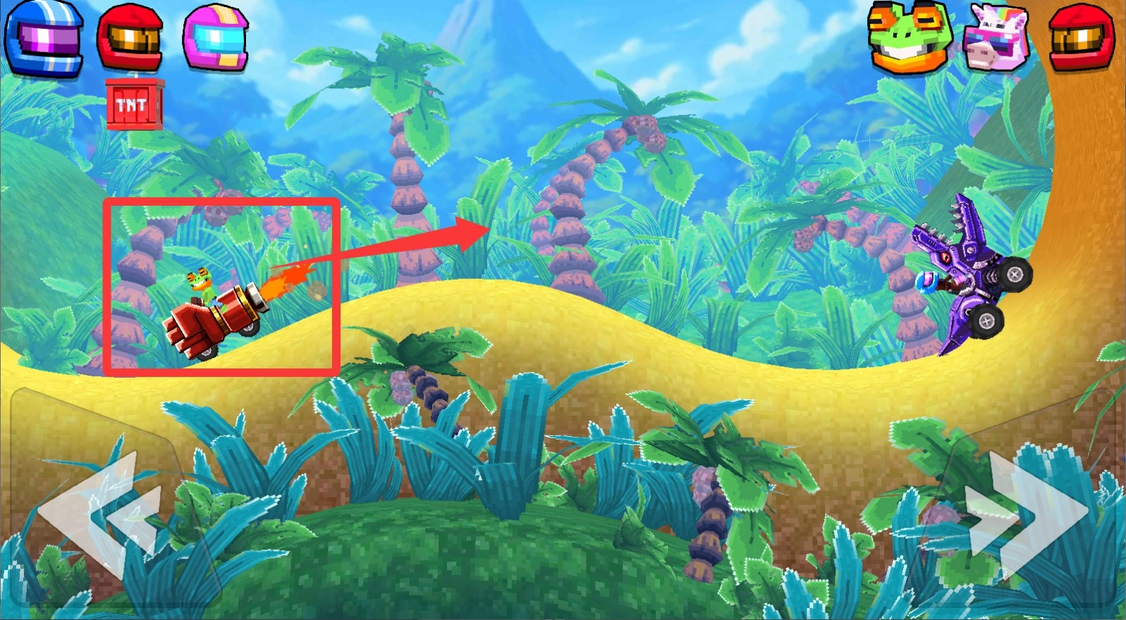 3、丰富的载具收藏系统,涵盖怪兽卡车、机械恐龙等数十款创意车型。每款载具都具备独特的重量参数与碰撞属性,会对对战策略的选择产生影响。