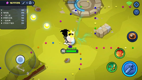 2、可以自由提升自己的角色,与其他玩家展开数十人的竞技对战,通过提升自身属性来击败更多对手。