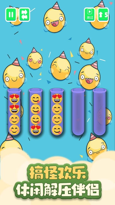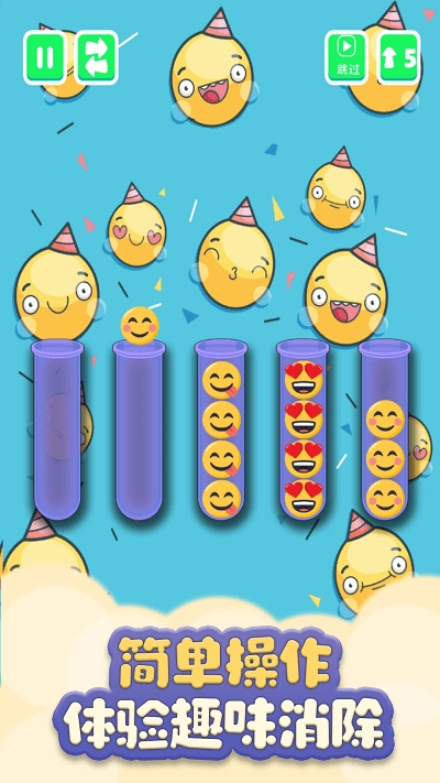 1、创新设计了表情消除机制,玩家需要把相同的表情图标拖拽到同一个试管里,只要凑够3个就能消除。