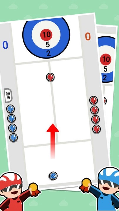3、戏场景界面中央设有灰色赛道,左右两侧各有一个小人角色,玩家可选择投掷雪球;人机角色会沿固定线路移动,双方通过互扔雪球进行对抗即可。