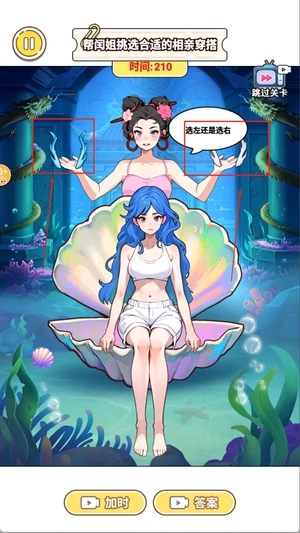 1、开始后进入换装界面,每个关卡都会给出不同的搭配任务和风格方向,选择适合的服装进行组合即可完成挑战。