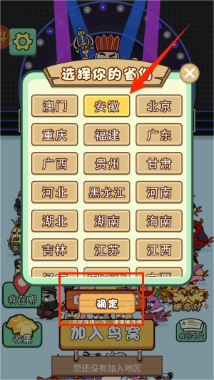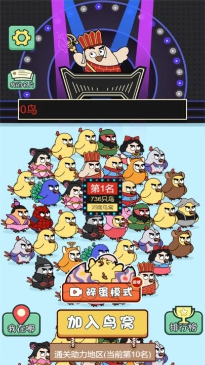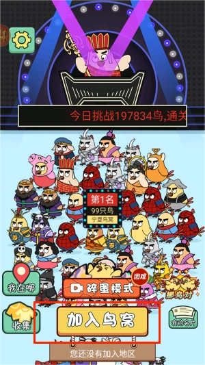 1、进入主界面后,点击“加入鸟窝”按钮,系统会跳转到地区选择页面。