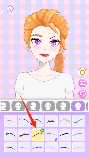 3、继续从眉形库中挑选心仪的样式,做好整体面部形象的细节修饰与搭配工作。