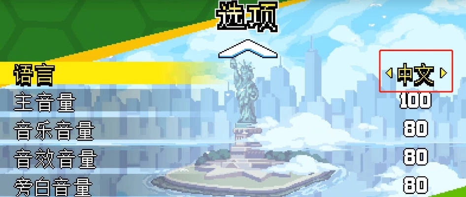 进入【OPTIONS】界面后,界面里的第一个选项就是语言设置栏,玩家只需把语言栏中的英文选项切换成中文即可。