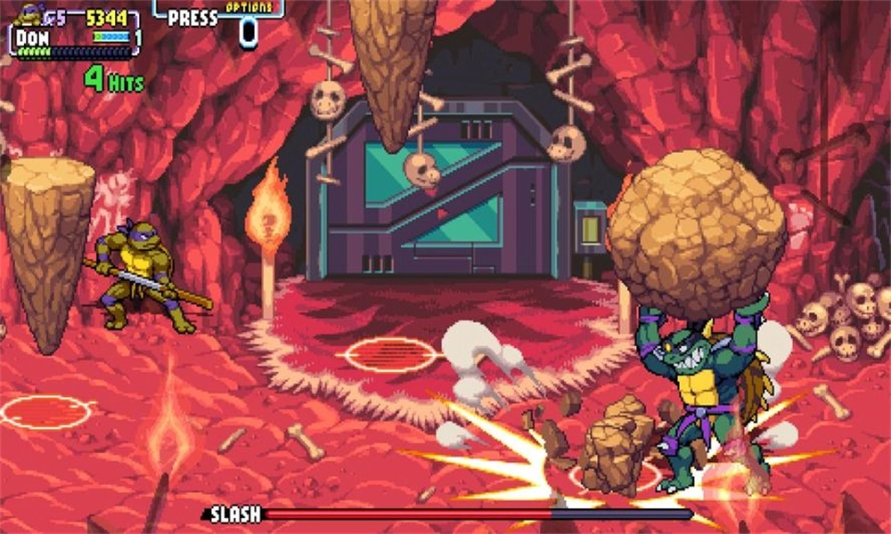 《忍者神龟:施莱德的复仇》是一款动作冒险游戏。它以经典的忍者神龟IP为背景,玩家将操控忍者神龟们,与邪恶的施莱德及其手下“大脚帮”展开对抗,重拾童年的经典记忆。游戏采用2D像素风格的画面,既融合了FC和SFC时代《忍者神龟》的经典元素,又加入了现代游戏机制,还支持最多六人的联机模式,能为玩家带来丰富的战斗乐趣与合作体验。