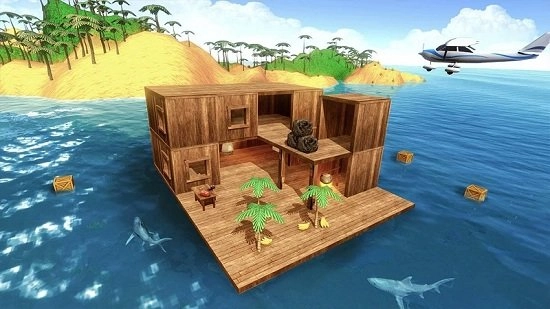 一开始木筏的构造十分简单,随着等级逐步提升,木筏的规模也会越来越大。如此一来,你就能抵御鲨鱼的侵扰,体验天气的变化,进行相关的模拟感受。可以随时留意饥饿值的变动情况,玩家还能够在木筏里养殖小鱼来获取金币,同时维持好生命值与饥饿值。