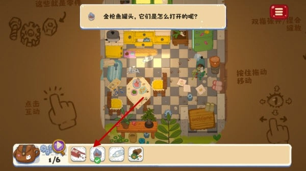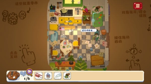 4、在关卡中,按住并拖动屏幕可控制移动,点击物品能触发互动,用双指张开或捏合的手势可以实现缩放操作。
