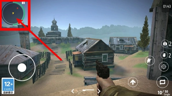 2.左上角的小地图能够显示敌人的方向和位置,其中红色标记代表敌人的动向,这有助于玩家快速判断战局并进行伏击。