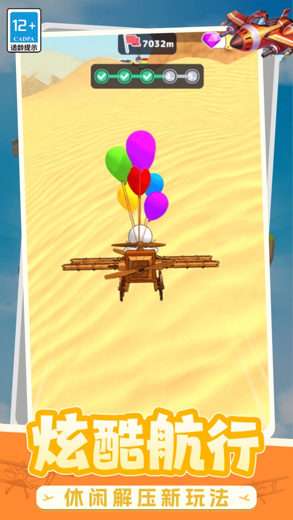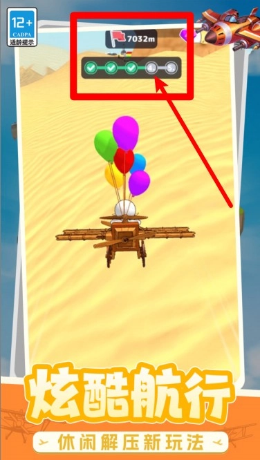 1.飞行进度呈现:画面顶部展示当前飞行里程与进度条,每完成一个阶段,对应标志便会点亮,以此体现飞行目标的推进情况。