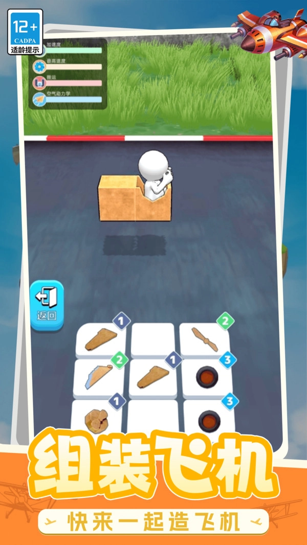 2.返回装配界面:点击左下角的按钮就能回到零件装配区域,你可以自由组合各类部件,打造出专属于自己的飞行器结构。