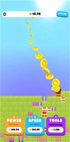 3、工具解锁与升级:游戏内配备了十字镐、炸药、挖掘机等多种工具。玩家可以用金币升级这些工具,以此提高开采的速度和范围,体验从手动采矿到机械化采矿的逐步演变过程。