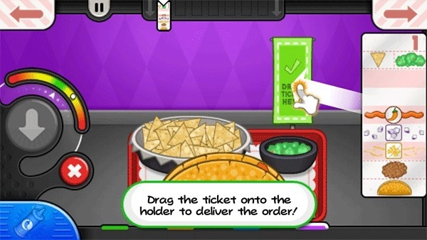 5、制作完成后,将小票拖动到餐盘上,就可送餐。