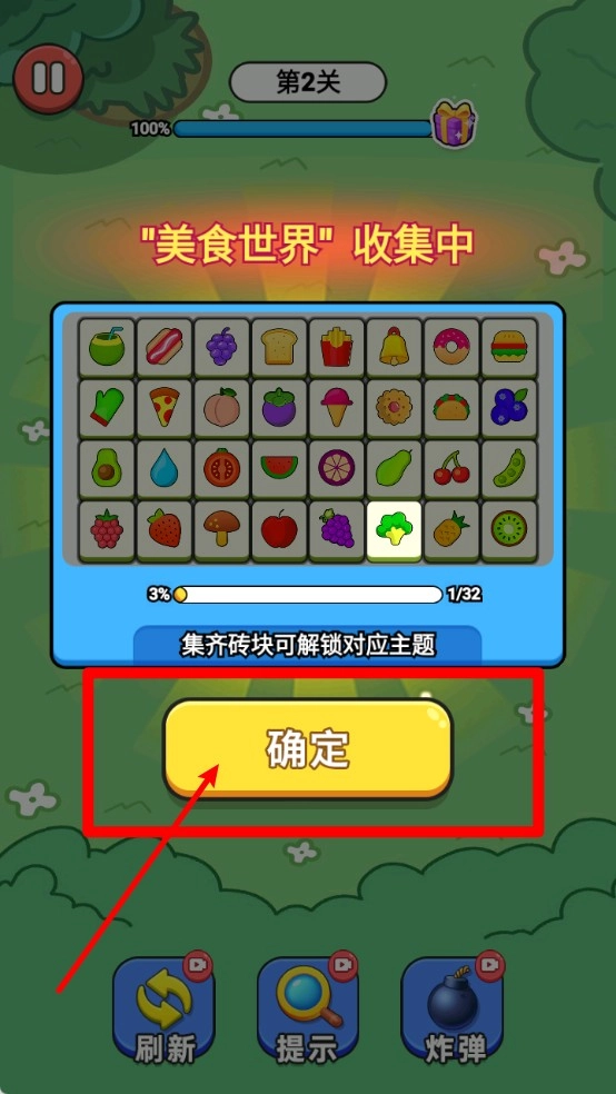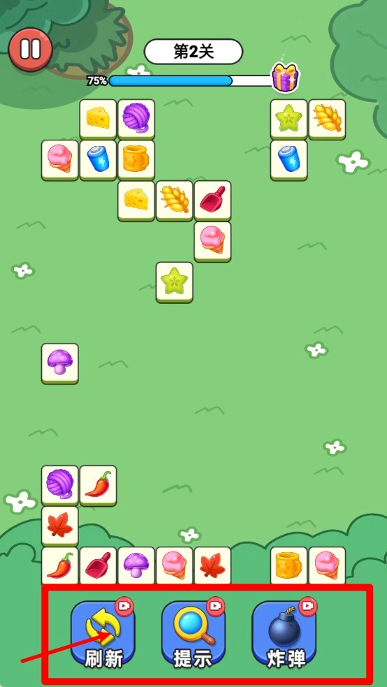 1.下方功能栏设有“刷新”“提示”“炸弹”等道具按钮,使用这些道具能够提高通关效率,或是帮助打破当前的卡顿局面。