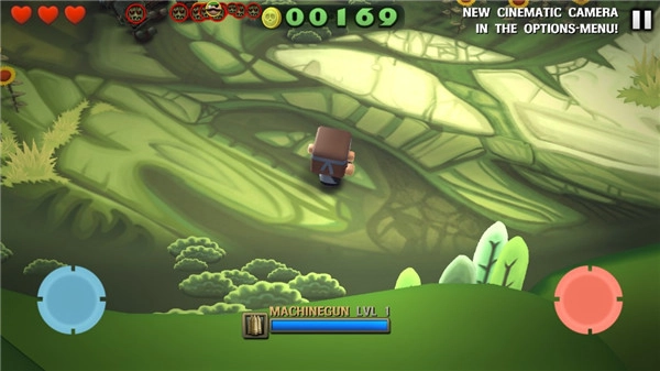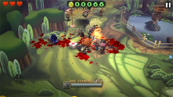 需要注意的是,攒金币解锁武器不会直接获得,玩家只能在关卡中拾取,所以你需要时刻留意脚下有什么武器可以用来武装自己。除此之外,游戏还添加了一些新元素,比如扣血后会呈现出焦头烂额的凄惨模样,如果有多余的武器箱,还能将其当作炸弹使用,直接秒杀一大片僵尸。