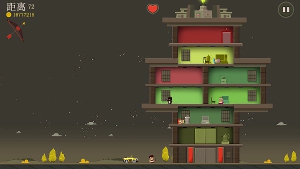 这段内容主要围绕破坏建筑物展开,我们可以借助手枪、猎枪或者汽车来达成目标。考虑到物理学原理,游戏里的主角通常会驾驶汽车横冲直撞以制造破坏效果。玩家向上滑动屏幕,汽车就会向上跳跃;向下滑动的话,汽车则会降落到下一个楼层,玩家能够自由地在各个楼层之间穿梭。不过要注意,手枪和猎枪只有在对抗BOSS时才能使用。