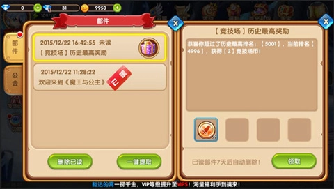 挑战胜利的奖励会通过邮件发送给各位小伙伴,别忘了查看邮件呀