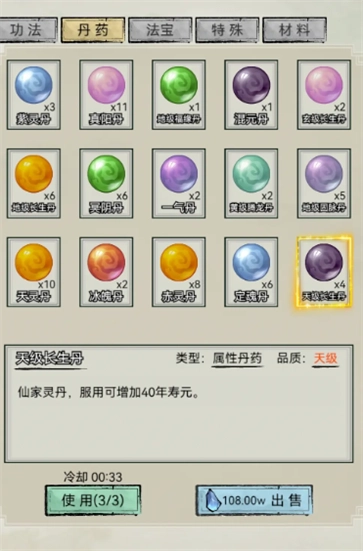 破境时建议优先使用扣寿元的方式,因为清心丹和固脉丹要留在坊市备用,而且寿元通常会有富余——我飞升时寿元还剩五百多呢。记住一定要等突破几率到百分百再尝试,寿元完全不用担心,哪怕悟性只有100也能慢慢等,不然没丹药就得去刷坊市了。