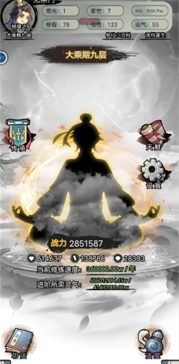 开局天赋:尽量以气运优先。不合适可以退出重开,天赋会随机的。