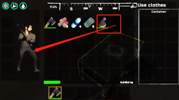 1、进入拾取斧子并装备上