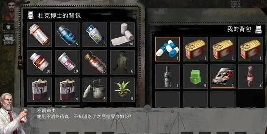 博士这里优先兑换止疼片、草药和酒,要是物资足够的话,木布铁也可以一并兑换。要是没刷到草药,就返回主菜单再重新进入找博士,直到刷出草药为止。