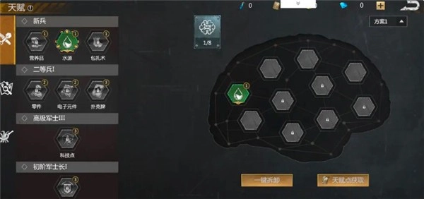 注册完成后,建议立刻进入天赋界面,领取已获得的天赋点。这里推荐优先选择能够提升水资源产量的天赋,这一选择将在后续的资源管理过程中为你节省大量精力。