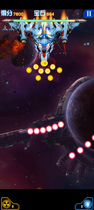 玩法——战斗时可以不断升级战机、主武器、僚机和导弹发射器等,这些装备在战斗中都起着关键作用。玩家需要通过星际掠夺、摧毁敌舰、科技升级和装备强化,打造出属于自己的专属战机。除了经典的闯关模式,游戏还设有挑战模式,供玩家体验不同的战斗乐趣。