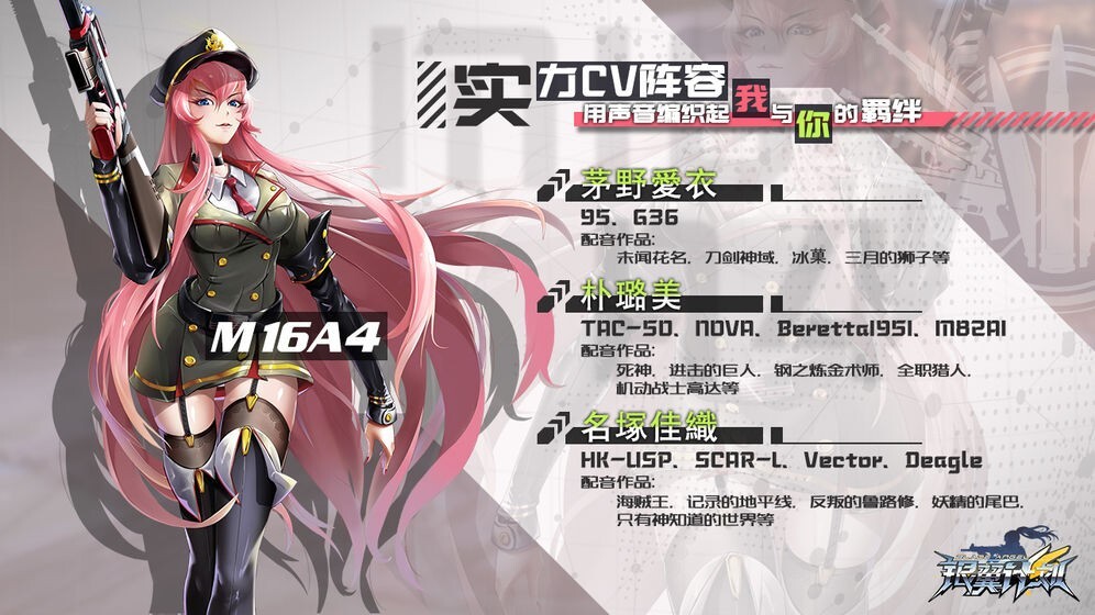 银翼计划是一款以二次元枪娘为核心的枪战射击游戏。它将大家熟悉的军武兵器进行拟人化处理,使其摇身一变成为一个个性格鲜明、外貌精致的二次元角色。有大师级声优倾情助阵,赋予了每一个生动的角色灵魂。而次时代的建模与制作,更是能让玩家的沉浸感进一步提升。