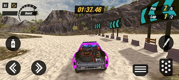 4、进入到游戏中之后,左下角的按键是控制越野车方向的按钮,方向按钮上方的则是控制车辆喷气加速的按钮。