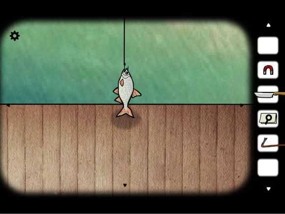 1、进入场景后,首先能在一面墙上找到鱼竿和绳子,它们是后续解谜的关键道具。