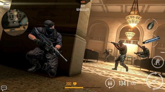 1、玩家借助屏幕进行瞄准、射击、切换武器以及移动等操作,以此达成任务里的击杀与生存目标;