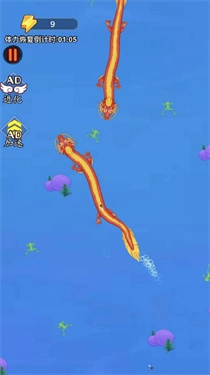 2、持续进化,从幼鱼逐步成长为中型鱼、大型鱼,最终的目标是蜕变为神龙。