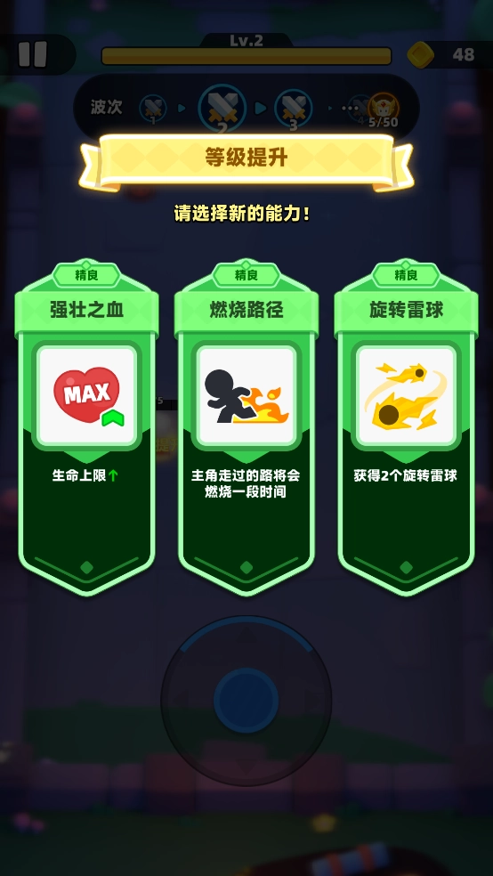 这款游戏的画面与音效表现都十分优秀,能让玩家获得极强的沉浸体验。值得留意的是,每次升级时都会有一次roguelike风格的三选一技能选择机会。其操作设计不仅降低了上手难度,还增添了游玩的趣味性。