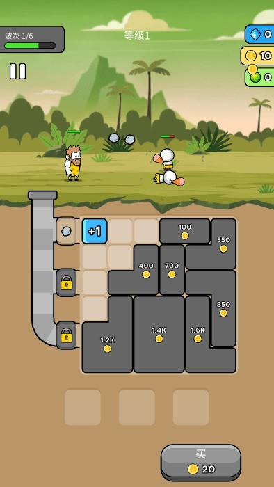 《原始冲突》是一款主打合成与战斗玩法的休闲益智游戏。在游戏里,你得用恰当的方式培养自己的战士,并且搭配对应的技能来提升战力——这样就能帮助部落击退更多敌人,逐步占领森林的所有区域。关卡中会出现各种形状的方块,每个方块上都标有金币数量;当你收集到目标数量的金币后,就能解锁这些方块,把它们移动到合适的位置进行合成。合成后的产物会变成强力武器,为战士提供充足的攻击力,用这些武器攻击敌人能获得显著的优势。