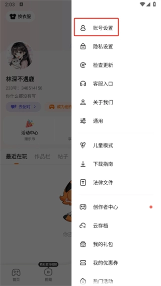 3、接下来进入更多页面后,我们需要点击【账号设置】选项。