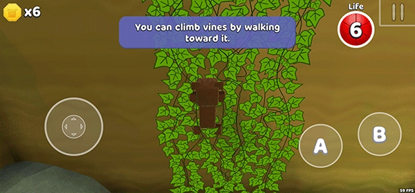 5、当熊熊靠近树叶藤蔓时,点击左下角的按钮并向上滑动,就能控制熊熊向上攀爬。