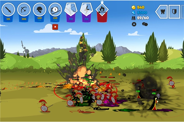1、多样的部队与技能:游戏内包含不同类型的火柴人战士,每个战士都具备独特的技能与属性,玩家能够依据战场局势灵活组合。