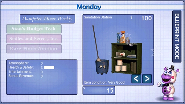 玩具熊的午夜后宫6手机版是经典玩具熊系列的全新作品,巧妙融合了恐怖解谜与餐厅经营元素。白天,你需要管理餐厅的日常运营;而到了午夜,真正的挑战才拉开序幕——你得在危机四伏的夜晚中求生,并用赚取的金币升级设备,提高餐厅的收益。这款游戏延续了系列标志性的画风与玩法,午夜时分,玩家需不断搜寻线索、躲避潜藏的危险,竭力撑到天亮。游戏采用类似传统RPG的视角与战斗系统,同时营造出强烈的压迫感,让每一刻都充满紧张氛围。此外,穿插其中的小型解谜环节,也能让你在高压环境下稍作放松。