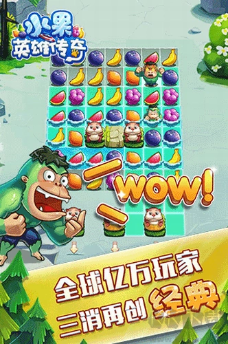 《水果英雄传奇》是一款主打三消玩法的休闲闯关游戏。在游戏里,玩家操控的水果小英雄能通过消除不同种类的水果来解锁技能与提升能力,随后便可运用这些技能和攻击去击败对面的小怪兽,这种玩法既有趣又充满新奇感!游戏采用清新的画风,搭配炫丽的消除特效,为你带来丰富的视觉享受,快来体验吧!