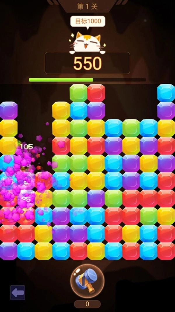 2、神秘山洞里藏着珍贵的宝藏,不过这些宝物都有守护神看守,得通过消除石块才能打败它们。