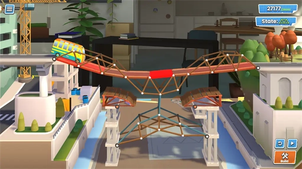 桥梁工程师是一款考验玩家技能的建设策略游戏,玩家需要在不同地形条件下,利用有限的资金和多种建筑材料来设计并搭建桥梁。所建造的桥梁必须通过压力测试,能够承受车辆或人员的通行。游戏包含设计模式和测试模式,剩余的预算会转化为关卡得分,这就要求玩家在成本与桥梁稳定性之间寻求平衡。