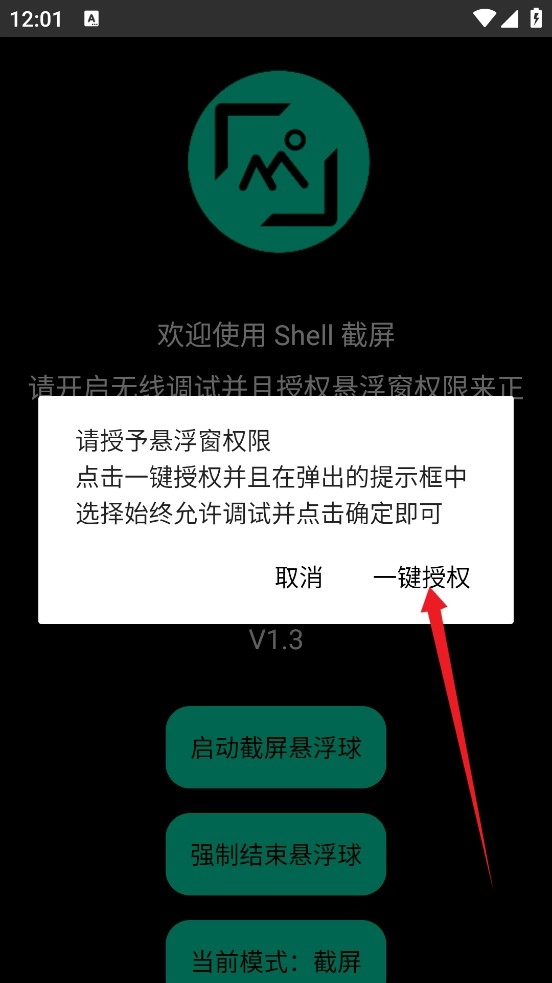 由于是第一次使用该软件,它会申请获取手机的部分权限,就像图里展示的那样,我们直接点击【一键授权】按钮就可以了。