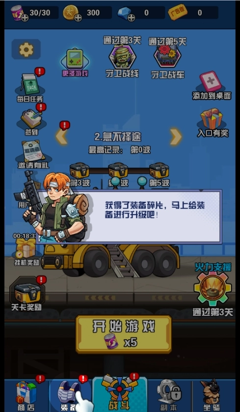 1、进入,按照提示先升级自己的装备;